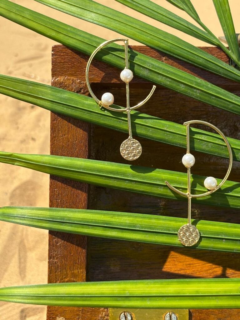 Crafted to stand out, the minimalist structure and contrasting elements make them ideal for both everyday wear and special occasions. Whether you’re dressing up for a beach outing or a brunch date, these earrings add a subtle yet stylish statement.
